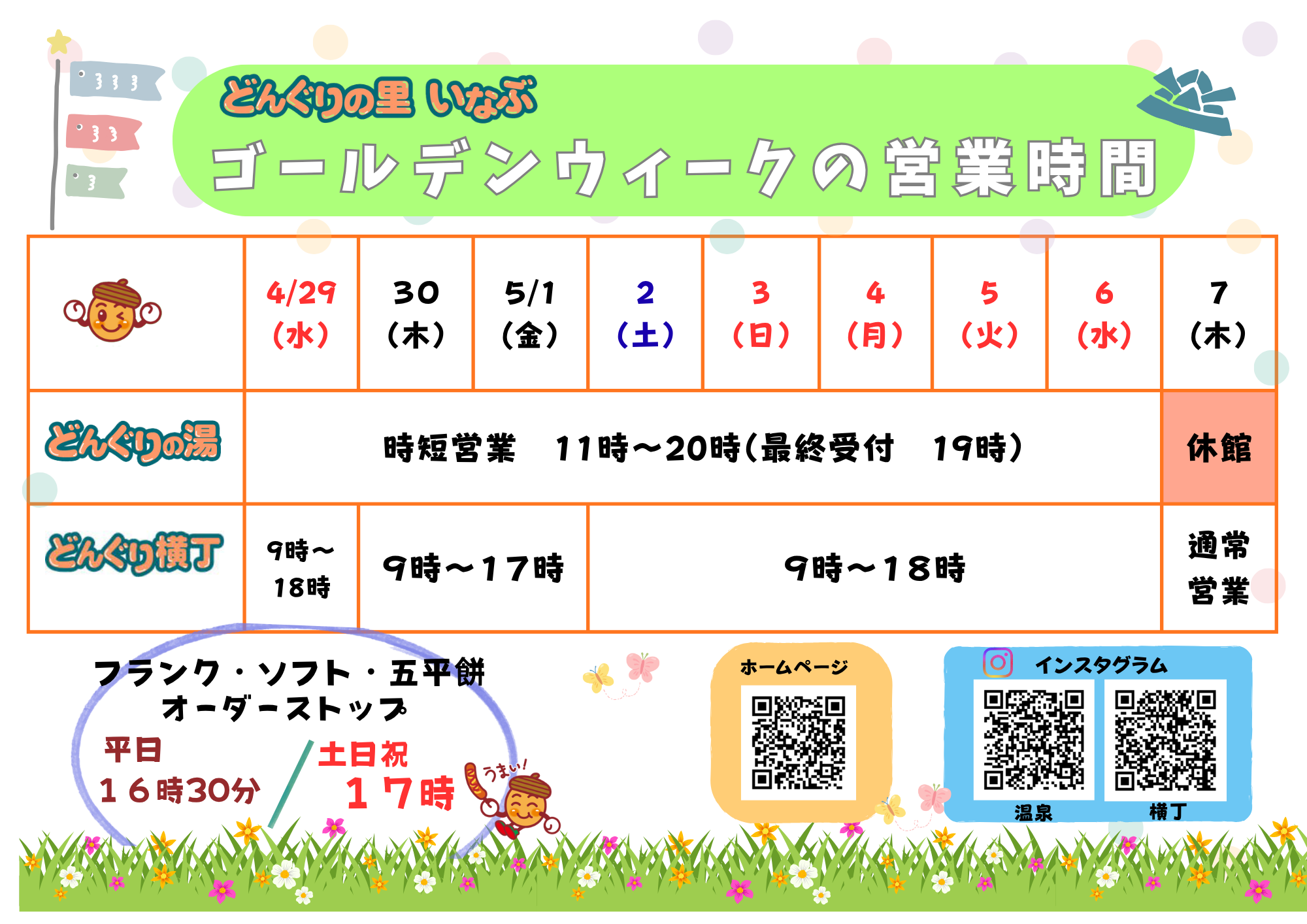 5/5(火・祝)は小学生以下のお子さまは無料でどんぐりの湯に入館できます!